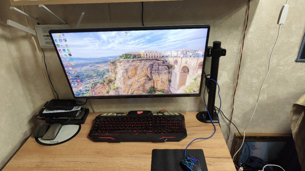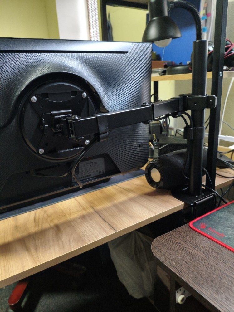 Кронштейн для монитора и ТВ отлично подойдет для организации рабочего пространства. Замените неудобную подставку под вашим монитором. Конструкция кронштейна позволяет регулировать углы обзора в широком диапазоне. Пользователь может поворачивать и наклонять дисплей, а также регулировать его высоту над столом. Дополнительные плечи дают больше возможностей про регулировке положения монитора, а также размещение основания со сдвигом. Есть возможность разворачивать дисплей для портретной или альбомной ориентации, в зависимости от требуемых задач.