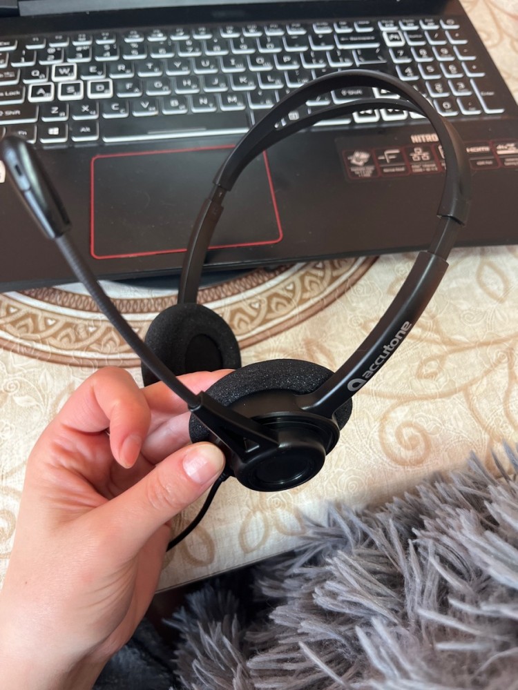 Оголовье регулируется по длине, его надо настроить так, чтобы было удобно работать с гарнитурой длительное время.