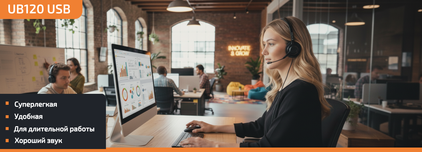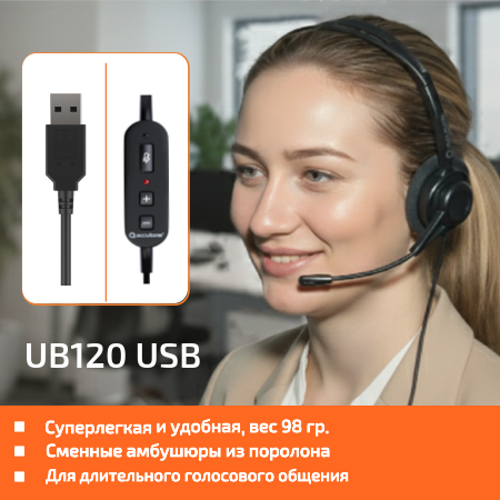 Наушники с микрофоном Accutone UB120 USB - модель 2025г. Это бюджетное решение, легкое и удобное для тех, кому нужна голосовая связь и кто проводит в наушниках большое количество времени. Музыку в этой модели можно слушать в удовлетворительном качестве, соответствующем ценовой категории и конструкции.