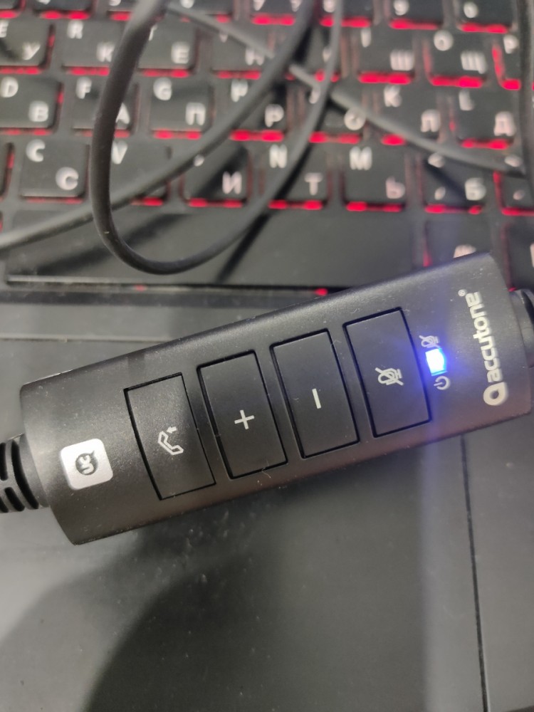 Удобным элементом является цифровой пульт, расположенный на кабеле гарнитуры. С его помощью производится регулировка громкости, отключение и включение микрофона, ответ на вызов. При подключении гарнитуры к разъему USB загорается голубой индикатор - устройство готово к работе. При нажатии кнопки отключения микрофона, световой индикатор меняет цвет на красный - звук не поступает в канал связи. Кнопка ответа на вызов совместима с Teams.