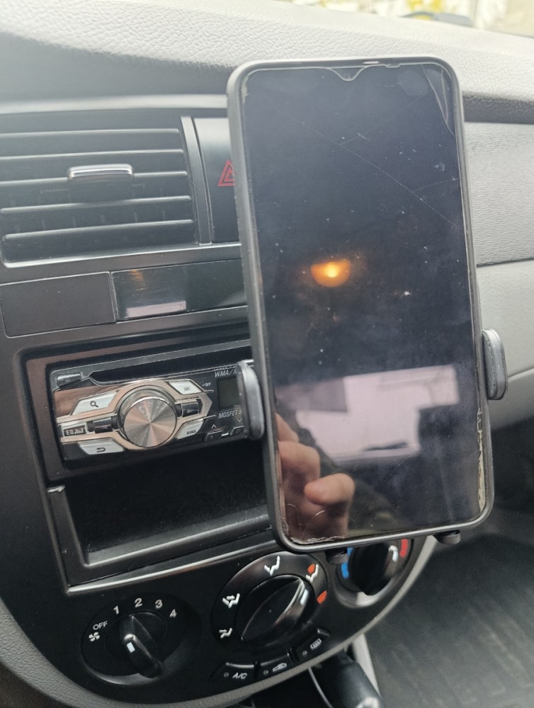 Снизу у зажима есть опоры смартфона. Изначально они задвинуты в корпус держателя. Их надо вынуть и развернуть на 90 градусов. Нижние опоры совместно с зажимом с ребристыми вставками держат смартфон надежно даже на очень неровной дороге.