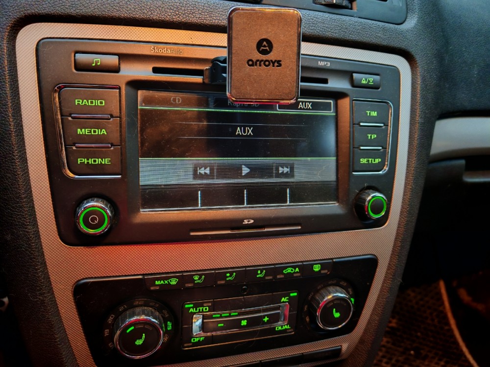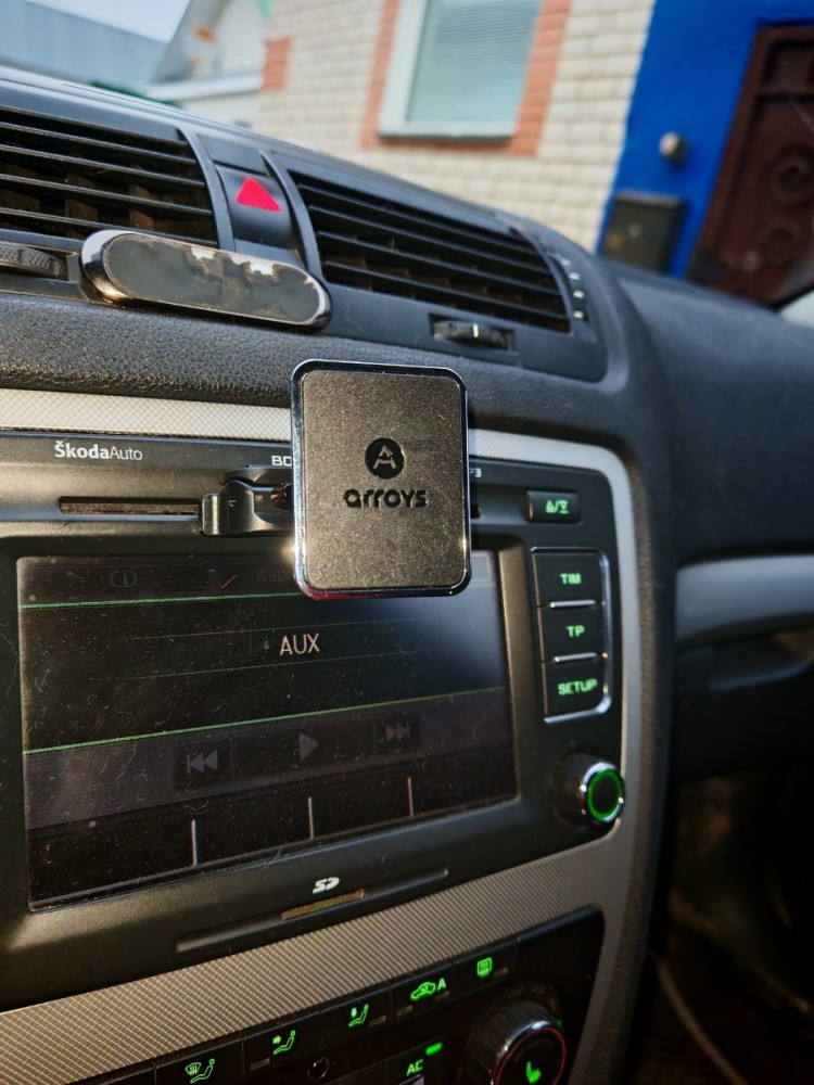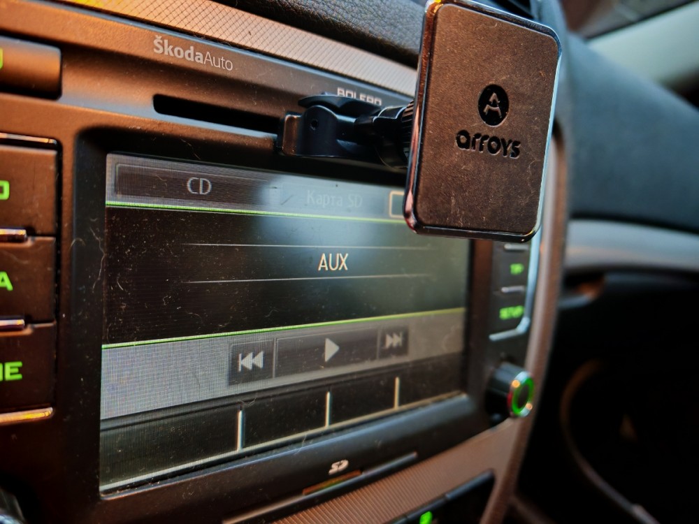 Модель магнитного автомобильного держателя с креплением в CD-слот Arroys CD-SM1 - одно из лучших предложений в рынке. Она исключительно компактная, размер основания в ширину - всего 55 мм, изготовлена из качественных материалов и сама конструкция устройства сделана так, что крепление в слоте CD очень надежно. Три лопасти основания вставляются в проем CD магнитолы авто и разжимаются внутри слота с помощью крутящегося фиксатора. Доступ к элементам управления панели CD практически не ограничивается за счет маленького размера держателя. Рекомендуется размещать автодержатель не по центру слота, а слева или справа.