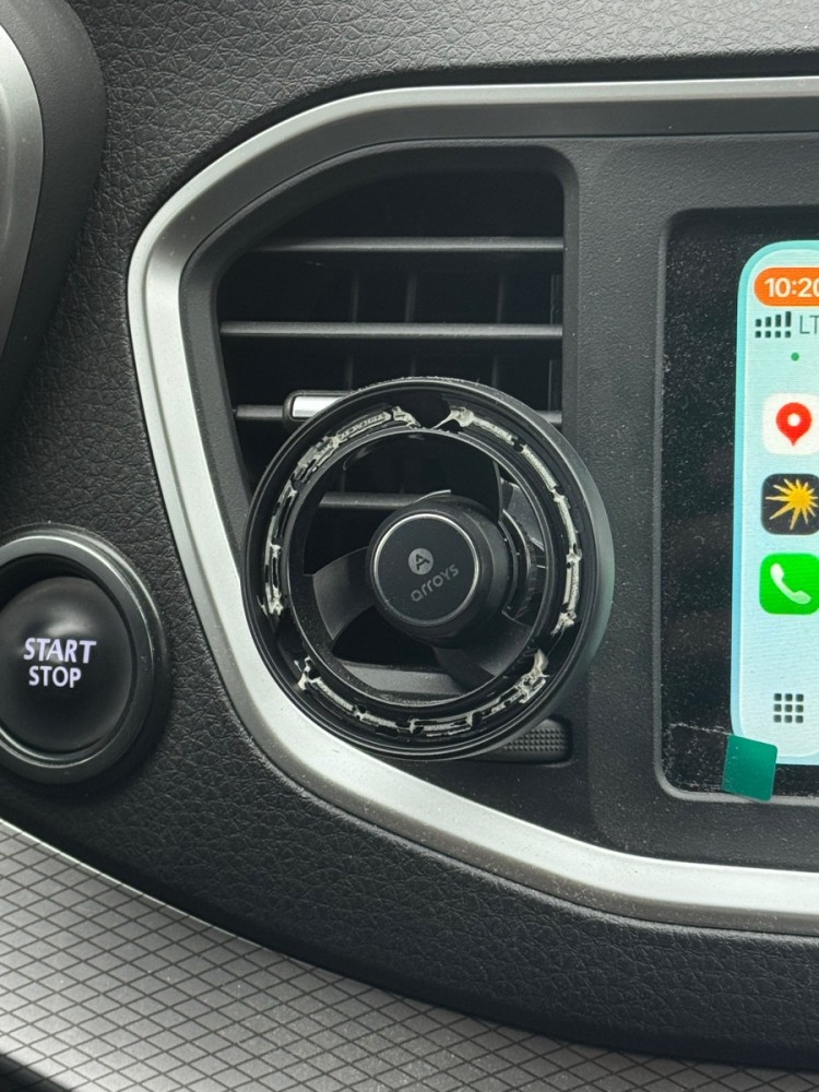 Новая модель от Arroys 2024 г- Vent-MS3 предназначен для использования с телефонами или чехлами с креплением Magsafe. Встроенное в держатель магнитное кольцо обеспечивает крепление телефона на держателе. Фиксаторы MagSafe устанавливаются на iPhone, начиная с серии 12 и , также, встречаются чехлы с таким креплением. В обоих случаях телефон можно устанавливать на держатель без дополнительных приспособлений. В держатель вмонтирован центрирующий магнит, ответная часть к которому находится в iPhone. Он дает возможность выровнять и зафиксировать iPhone по вертикали.
