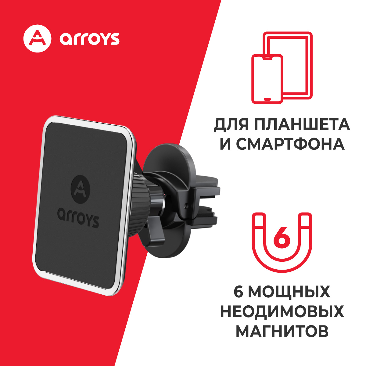 Автомобильный магнитный держатель для смартфонов с креплением в вентиляцию Arroys Vent One - очень компактный стильный аксессуар, который наверняка впишется в интерьер вашего авто. Он изготовлен из очень качественных материалов и это сразу ощущается, когда берешь его в руки.