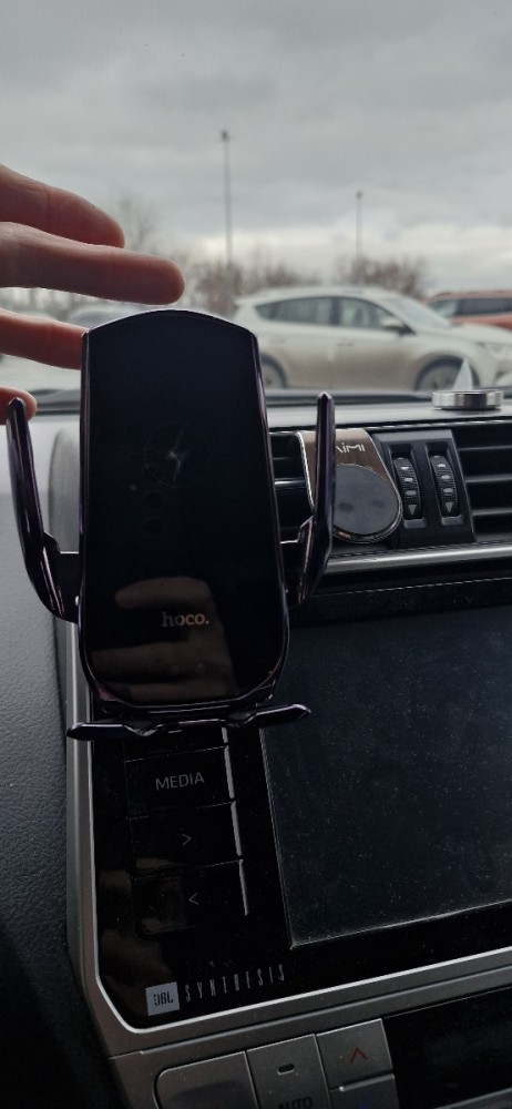 держатель для смартфона с беспроводной зарядкой Hoco CA202 Plus Enlightener infrared induction wireless charging holde black/metal gray