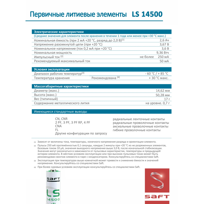 батарейка Saft LS 14500 (AA) 24шт.