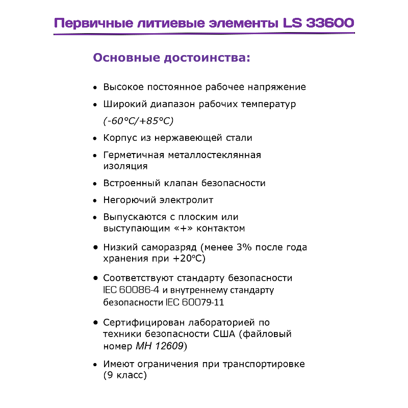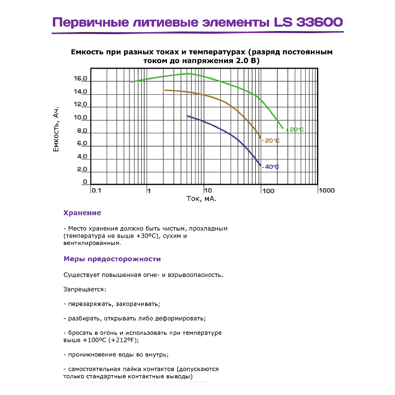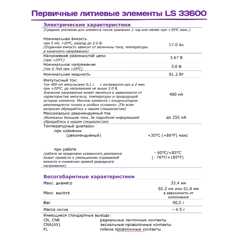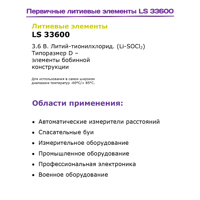 • Напряжение 3.6 В