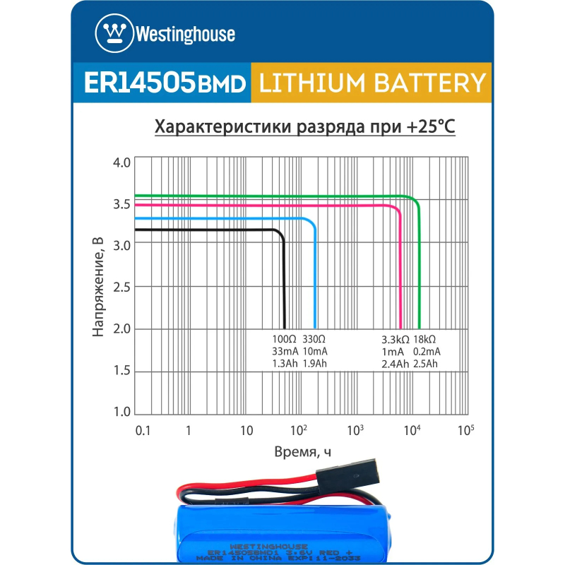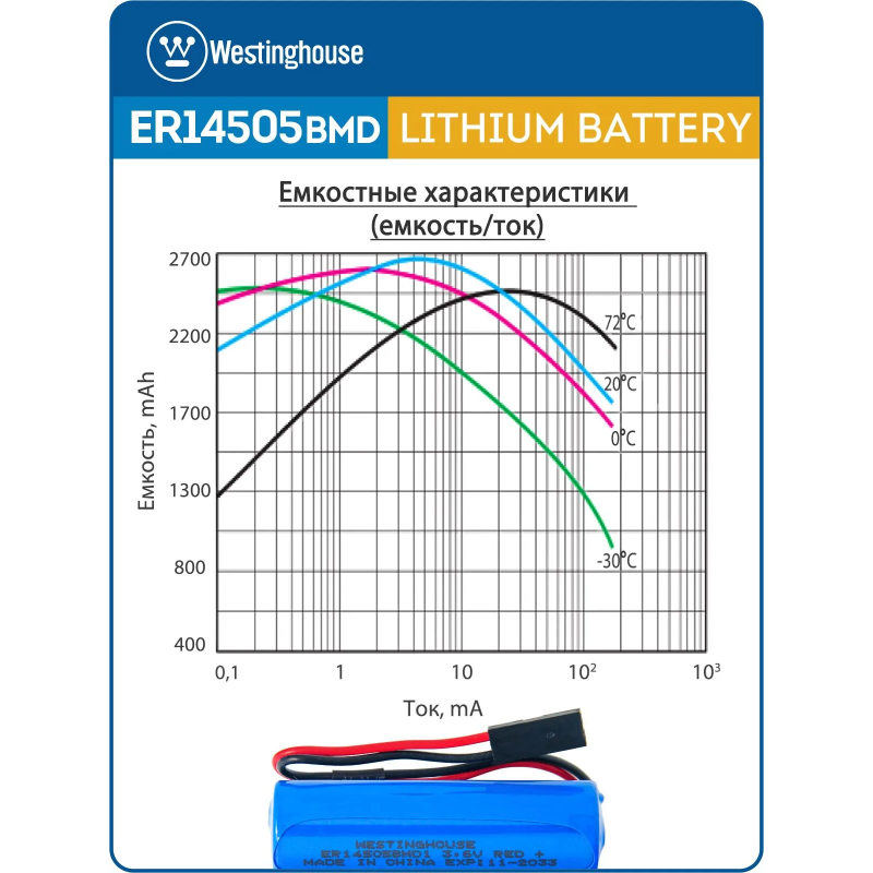 батарейки 3.6 В с коннектором Dupont 2,54 (BLS-2) Westinghouse ER 14505BMD1 (AA) connector 10шт.