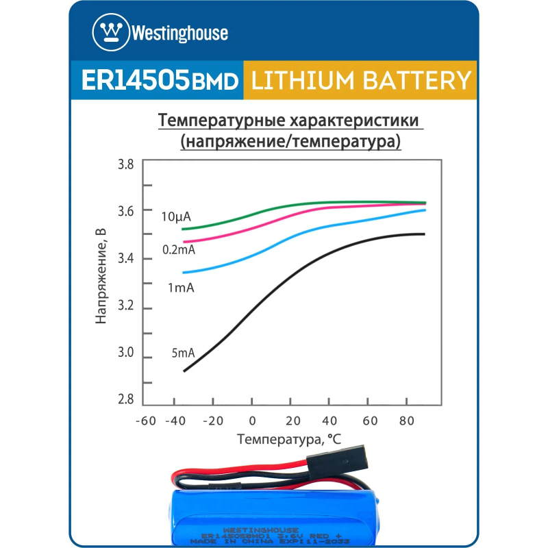 батарейки 3.6 В с коннектором Dupont 2,54 (BLS-2) Westinghouse ER 14505BMD1 (AA) connector 3шт.