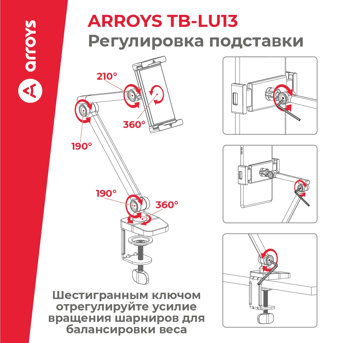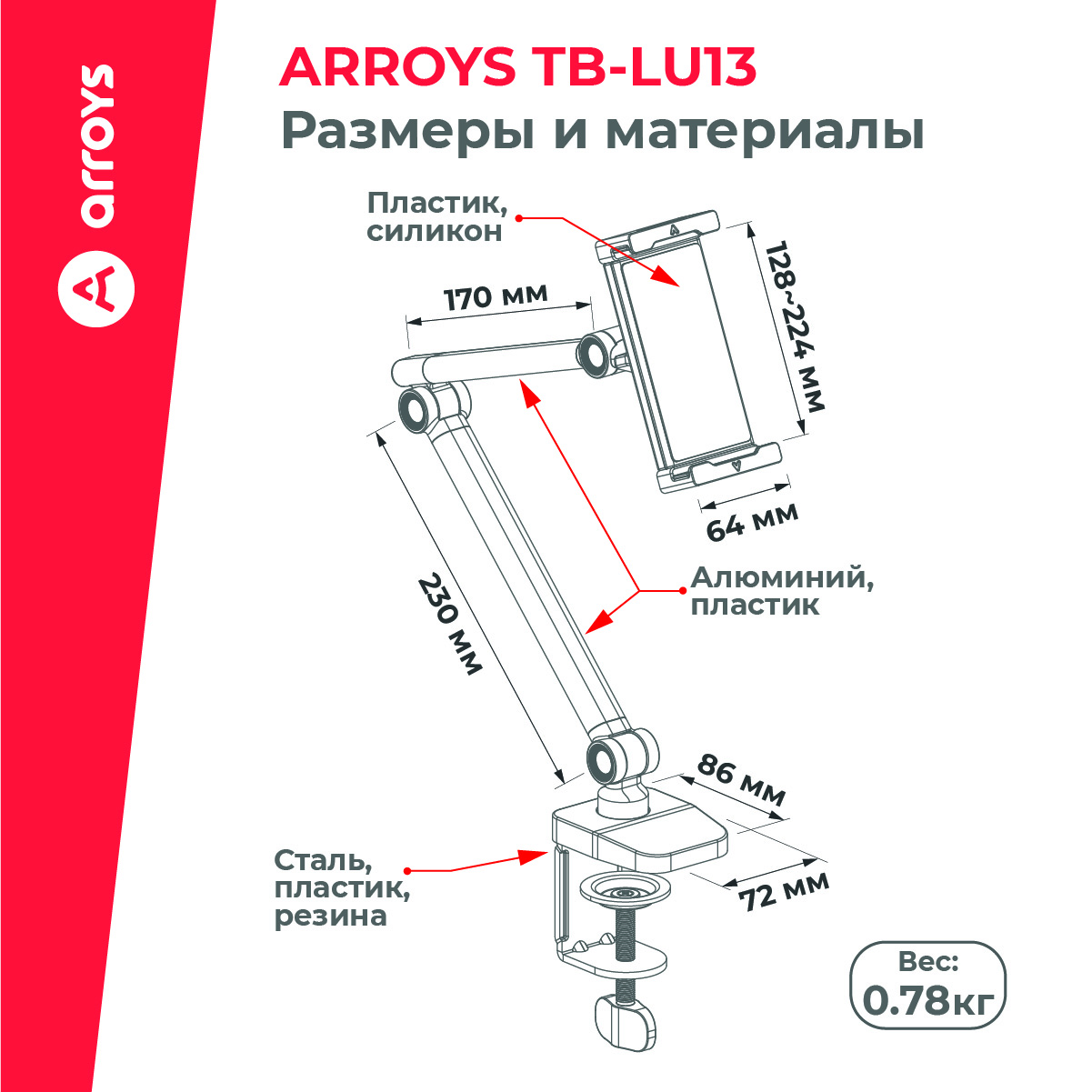 Arroys TB-LU13 - подставка на струбцине для мобильных устройств таких как планшеты, смартфоны, электронные книги.